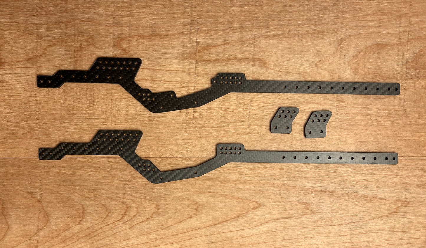 Our 1st competition based chassis made from the high quality options of Carbon Fiber or G10.